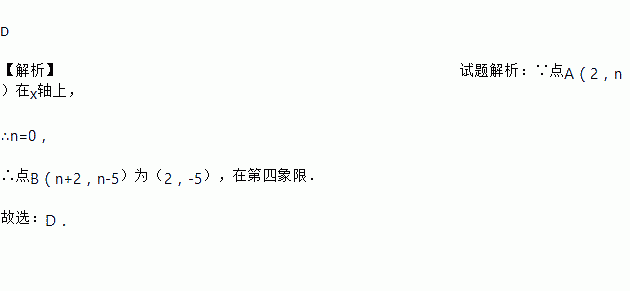 若点A(2,n)在x轴上,则点B(n+2,n-5)在( )