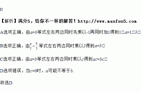C. 由a=b,得到ac=bc D. 由ac=bc,得到a=b