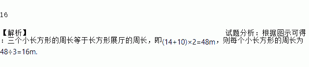 水仙花是漳州市花,如图,在长为14m,宽为10m的长方形展厅,划出三个形状、大小完全一样的小长方形摆放水仙花,则每个小长方形的周长为_____m.