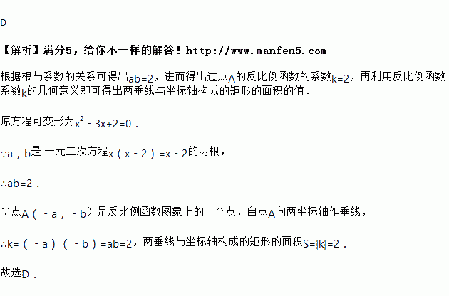 若a,b是一元二次方程x(x﹣2)=x﹣2的两根,且点A(﹣a,﹣b)是反比例函数图象上的一个点,若自点A向两坐标轴作垂线,两垂线与坐标轴构成的矩形的面积是( )