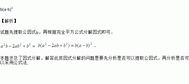 分解因式:a2b-2ab2+b3= .