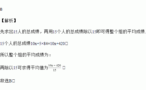 10名学生的平均成绩是x,如果另外5名学生每人得84分,那么整个组的平均成绩是( )
