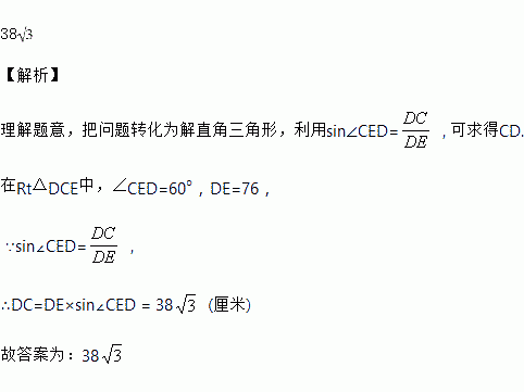 如图是某品牌太阳能热水器的实物图和横断面示意图,已知真空集热管AB与支架CD所在直线相交于水箱横截面⊙O的圆心,支架CD与水平面AE垂直,AB=150厘米,∠BAC=30°,另一根辅助支架DE=76厘米,∠CED=60°.则垂直支架CD的长度为_____厘米.(结果保留根号).