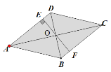 如图,在菱形中,对角线与相交于点,,,于点,交于点,则的长为 。