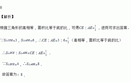 如图,四边形ABCD的对角线AC和BD相交于点E,如果的面积为3,的面积为4,的面积为6,那么的面积为______.