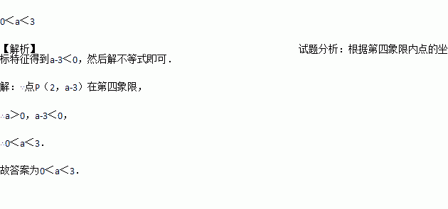 点 P(a,a﹣3)在第四象限,则a的取值范围是 .