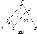 (3)如图3,已知D、E、F分别位于△ABC的三边上,且四边形CEDF为平行四边形,△ADF和△BDE的面积分别为4和25,求四边形CEDF的面积.