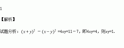 若(x+y)2=11,(x-y)2=7,则xy的值为 .