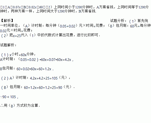 (1)某用户某月上网的时间为x小时,请分别写出两种收费方式下该用户应该支付的费用;