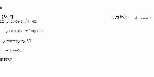 若(y+3)(y-2)=y2+my+n,则m、n的值分别为( )