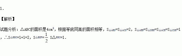 如图所示,在△ABC中,已知点D、E、F分别为边BC、AD、CE的中点,且△ABC的面积是4cm2,则阴影部分的面积等于 cm2.