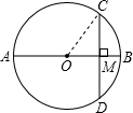 点评:本题考查了垂径定理,勾股定理的应用,关键是求出CM和得出CD=2CM.