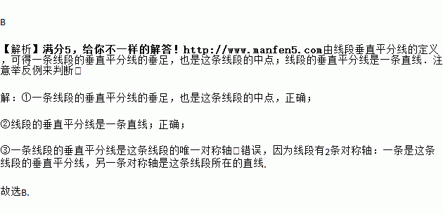 ①一条线段的垂直平分线的垂足,也是这条线段的中点;