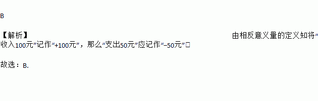 如果将“收入100元”记作“+100元”,那么“支出50元”应记作( )