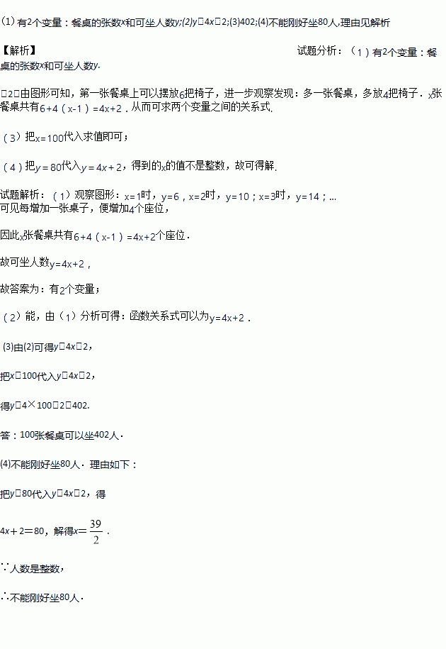 (4)按如图所示的方式摆放餐桌和椅子,能否刚好坐80人?请说明理由.
