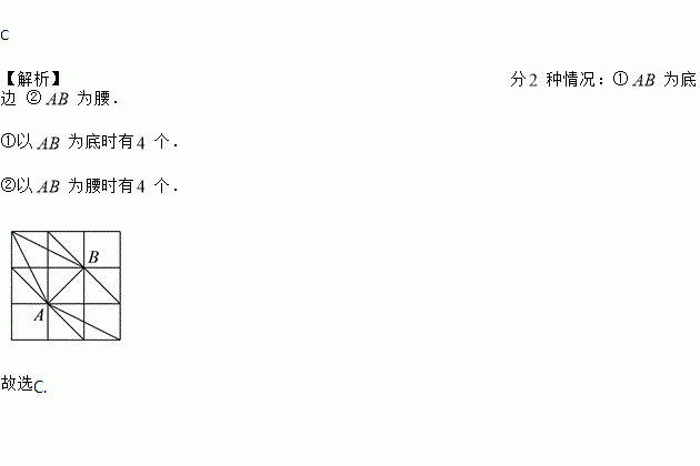 如图所示的正方形网格中,网格线的交点称为格点,已知、是两格点,如果也是图中的格点,且使得为等腰三角形,则点的个数是( ).