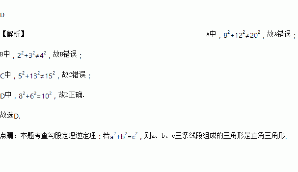 A. 8,12,20 B. 2,3,4 C. 5,13,15 D. 8,10,6