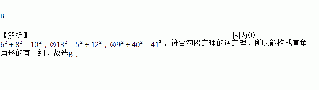 分别以下列五组数为一个三角形的边长:①6,8,10;②13,5,12 ③1,2,3;④9,40,41;⑤3,4,5.其中能构成直角三角形的有( )组