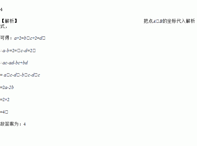 一次函数y=x+2的图象经过点A(a,b),B(c,d),那么ac﹣ad﹣bc+bd的值为__.