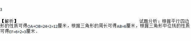 如图,?ABCD的对角线AC,BD相交于点O,点E,F分别是线段AO,BO的中点,若AC+BD=24cm,△OAB的周长是18cm,则EF=______cm.