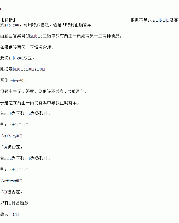 如果a+b+c=0,且|a|>|b|>|c|.则下列说法中可能成立的是( )