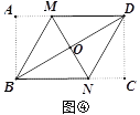 (3)如图④,若对角线BD与MN交于点O,分别沿BM、DN将MN两侧纸片折叠,折叠后,点A、C恰好都落在点O处,并且得到的四边形BNDM是菱形,请你探索a、b之间的数量关系.