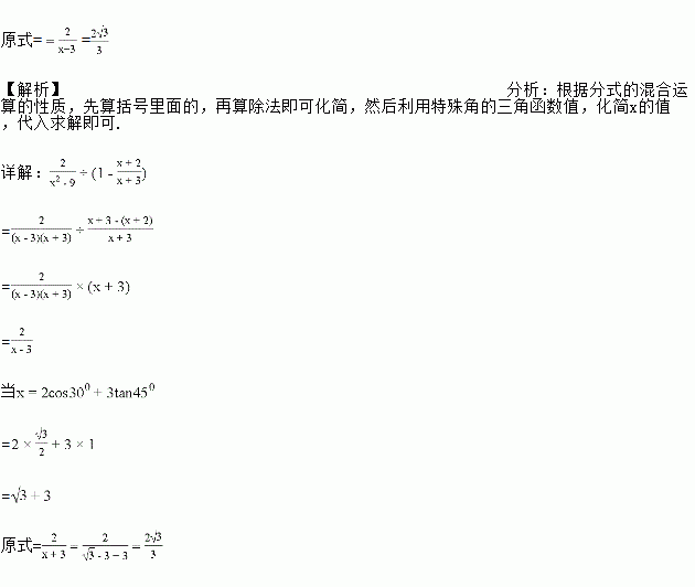 先化简,再求代数式的值,其中x=2cos30o+3tan45 o.