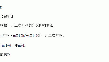 A. m=1 B. m≠0 C. m≥1 D. m≠1