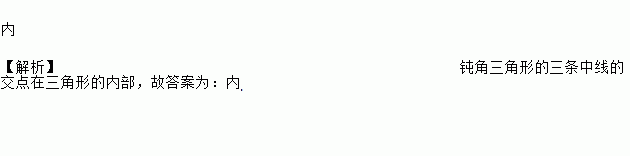 钝角三角形三边上的中线的交点在此三角形_____(填写“内”或“外”或“边上”).