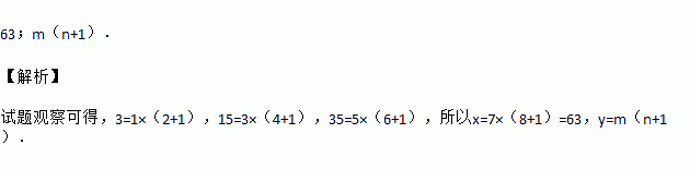 如图,下列各图形中的三个数之间均具有相同的规律,依此规律,那么第4个图形中的x= ,一般地,用含有m,n的代数式表示y,即y= .