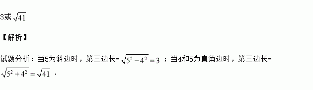 有一个三角形的两边长是4和5,要使这个三角形成为直角三角形,则第三边长为 .