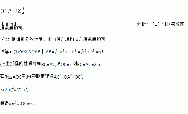 如图,直角三角形OAB中,∠AOB=90°,OA=1,OB=2,折叠△OAB,使点B与点A重合,折痕与边OB交于点C,与边AB交于点D.