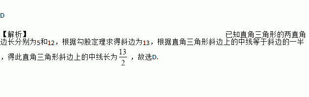 已知直角三角形的两直角边长分别为5和12,则此直角三角形斜边上的中线长为()