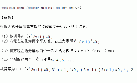 (2)方程左边化为两个平方差,右边为零得 _____;