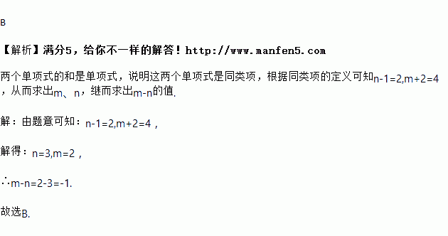 若-2a2bm+2与﹣an -1b4的和是单项式,则m﹣n的值为( )