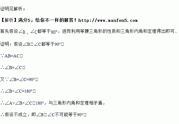 已知:在△ABC中,AB=AC.求证:∠B,∠C不可能等于90°.