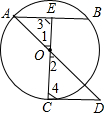 如图,已知AB为圆O的弦(非直径),E为AB的中点,EO的延长线交圆于点C,CD∥AB,且交AO的延长线于点D.EO:OC=1:2,CD=4,求圆O的半径.