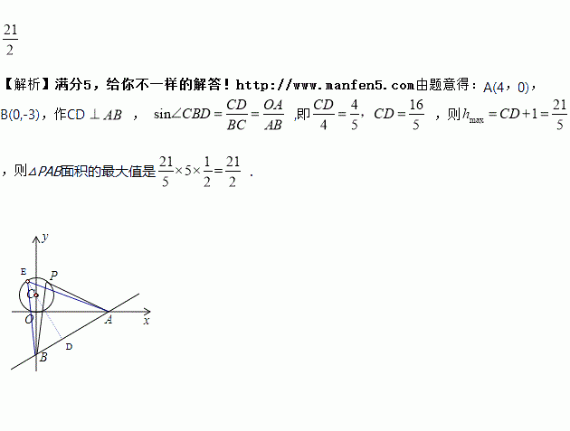 如图,已知直线y=x﹣3与x轴、y轴分别交于A、B两点,P在以C(0,1)为圆心,1为半径的圆上一动点,连结PA、PB,则△PAB面积的最大值是_____.