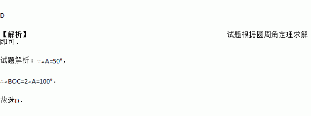 如图,点A,B,C在⊙O上,∠A=50°,则∠BOC的度数为( )