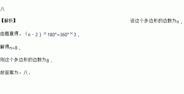 一个多边形的内角和是外角和的3倍,则它是_____边形.