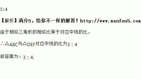 已知△ABC∽△DEF,若△ABC与△DEF的相似比为,则△ABC与△DEF对应中线的比为_____.