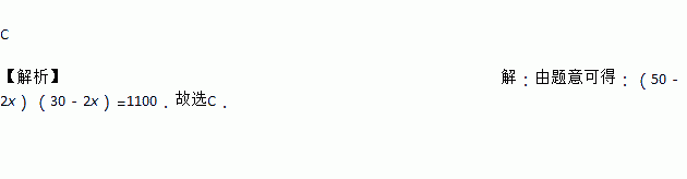 C. (50﹣2x)(30﹣2x)=1100 D. 50×30﹣4x2﹣(50+30)x=1100