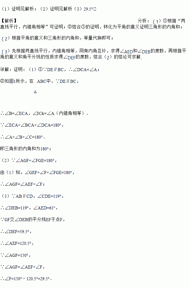 (3)如图(3),AB∥CD,∠CDE=119°,GF交∠DEB的平分线EF于点F,∠AGF=150°,求∠F.