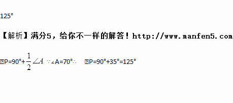 如图,已知在△ABC中,∠B与∠C的平分线交于点P.当∠A = 70°时,则∠BPC的度数为________.