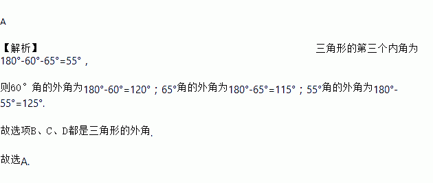 一个三角形的两个内角分别为和,这个三角形的外角不可能是( ).