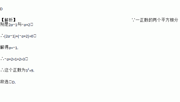 若一个正数的平方根是2a﹣1和﹣a+2,则这个正数是( )