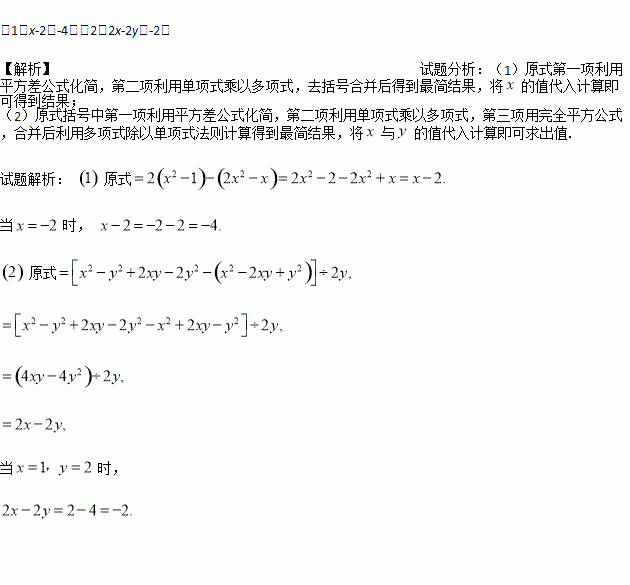 (1)2(x+1)(x﹣1)﹣x(2x﹣1),其中x=﹣2;