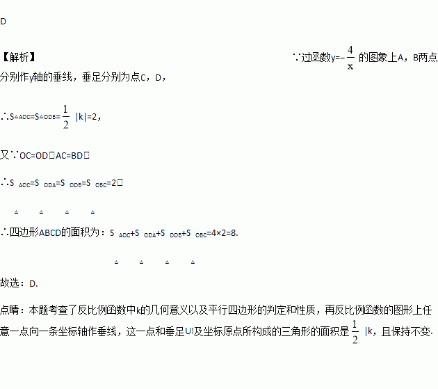 如图,函数y=-x与函数y=-的图象相交于A,B两点,过A,B两点分别作y轴的垂线,垂足分别为点C,D,则四边形ACBD的面积为( )