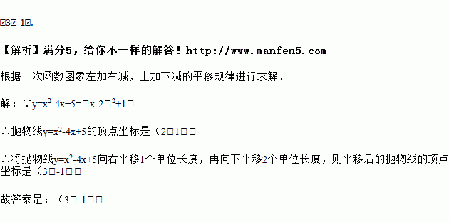 将抛物线y=x2﹣4x+5向右平移1个单位长度,再向下平移2个单位长度,则平移后的抛物线的顶点坐标是_____.