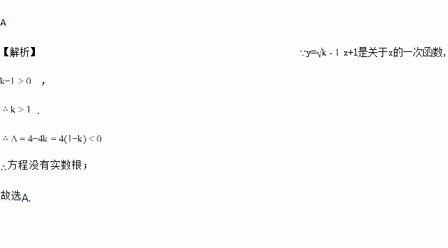 A 【解析】∵y=x+1是关于x的一次函数, , . ∴方程没有实数根; 故选A.